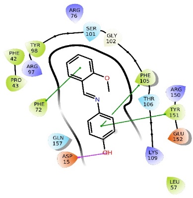 Fig. 1: Compound 1 protein-ligand interaction complex (PDB id: 1E2D) in molecular docking