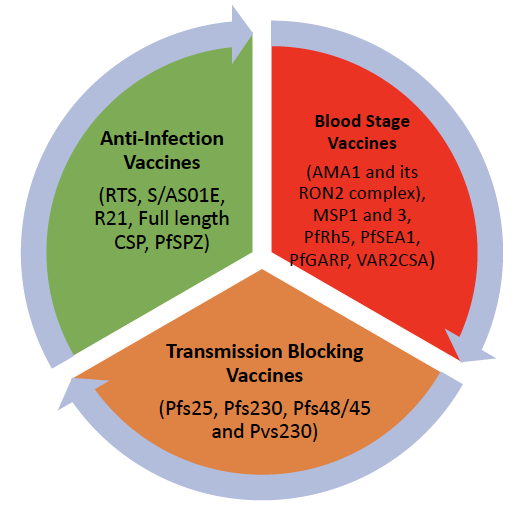 Fig. 1: Malaria vaccines and classification based on their mechanism of action