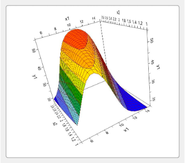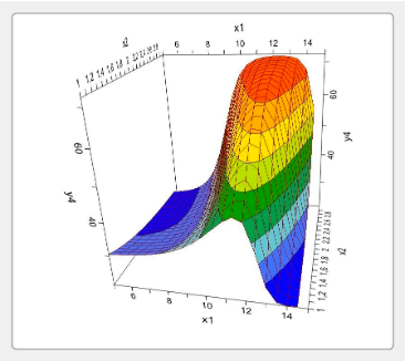 Fig. 1: Effects of independent variables x1 and x2 on the dependent variable (a) y1, (b) y2, (c) y3, (d) y4, (e) y5, (f) y6