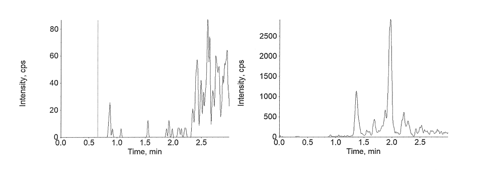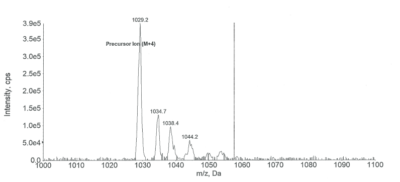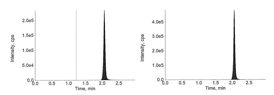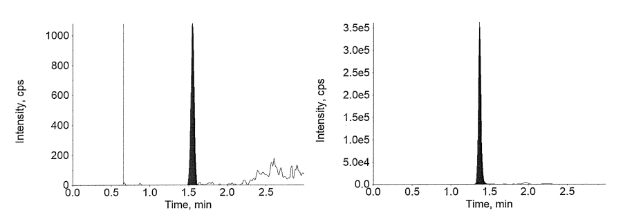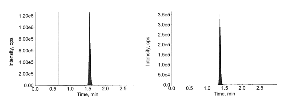 The specificity of the method was gauged by studying six different plasma lots to investigate the likely interferences at the retention time for both analytes and internal standards. The six blank lots were processed without analytes or internal standards. The acceptance criteria were that at least five out of the tested six blanks must have<20% area interference to that of the LLOQ level response at the corresponding retention time. Selectivity of the assay was established by analyzing six individual blank plasma lots with individual analyte spiking and checking for interference at other analyte and Internal Standard retention time.