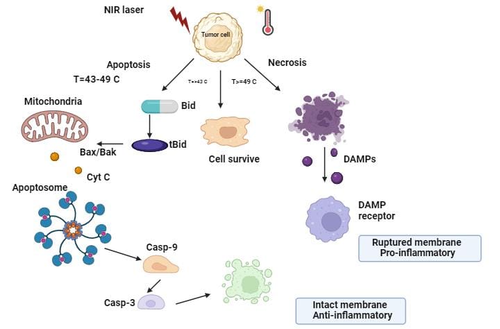 Fig. 2: Cell death mediated by photo thermal therapy (PTT) [70]
