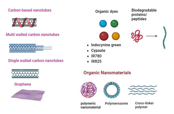 In comparison, organic nonmaterials demonstrate higher biocompatibility [22]. To address this issue, various bio-nonmaterials have been synthesized to enhance the photo thermal effect while ensuring biocompatibility, biodegradability, low cytotoxicity, and rapid clearance from the body. This bio-nonmaterial’s are discussed in the following section and are summarized in table 1 [70].