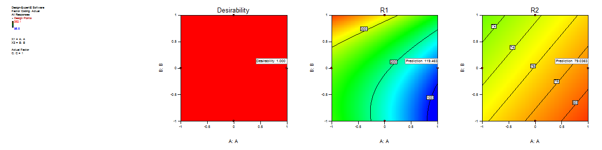 When comparing the regression and residual means squares, an F-test was used. There is statistical evidence of a substantial regression (F = 11.50). Particle size response surfaces based on the predicted model are therefore possible. Both the 3 Dimesional (3D) surface model and the contour model graphs about particle size are shown in fig. 1.