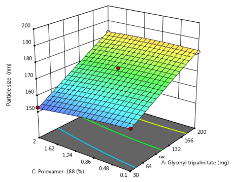 As per the information provided in table 3, the optimized SLN was prepared and responses were recorded in table 4 as observed values. The observed value and predicted mean (obtained from response surface simulation) were compared.
