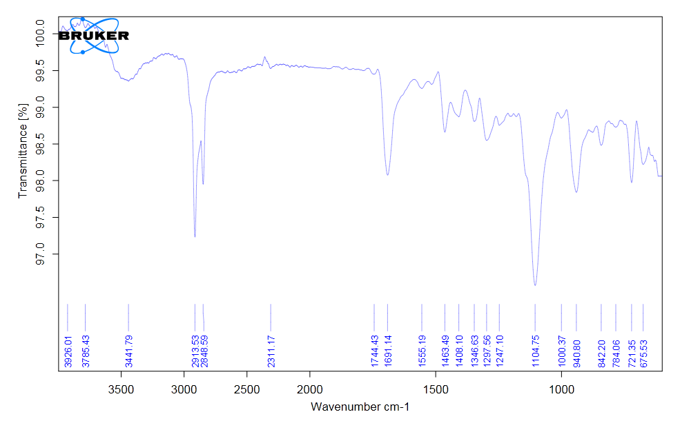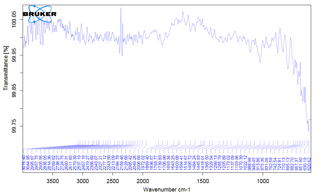 When combined with infrared spectroscopy, Attenuated Total Reflection (ATR) sampling allows materials to be analyzed in-situ, either solid or liquid, without the need for additional preparation. Online monitoring of polymer composition is a particularly valuable application of ATR spectroscopy [22]. IR can identify the components of a chemical process because of its capacity to fingerprint chemical components. The German company ATR Bruker Opus 7.0 was used to carry out the investigation.