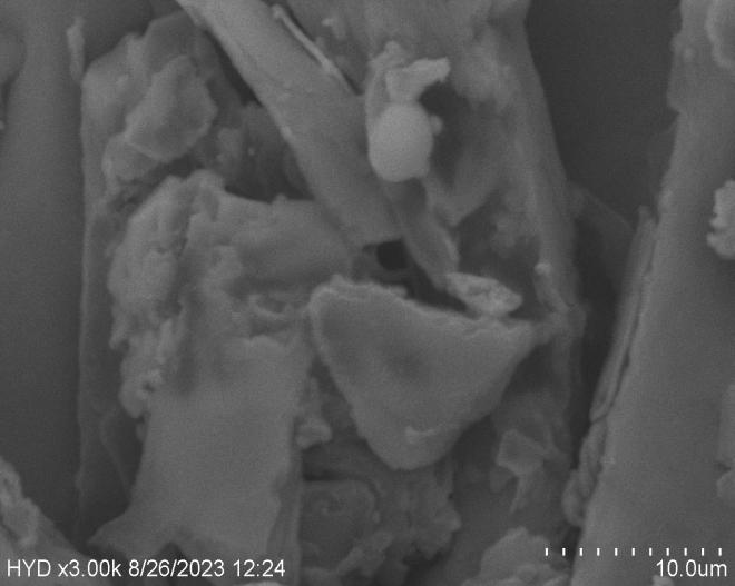 SEM analysis revealed SLN and drug crystals dispersed widely. The analysis also showed that optimized SLN surfaces and appearances are asymmetrical. As seen in fig. 16(a), there is a greater asymmetry in the distribution of SLN across the sample. The optimized SLN formulation was reported to exhibit scattered dispersion in fig. 16(b) (10.0 µm resolution).