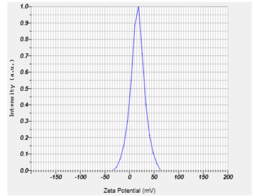 SLNs dispersed in phosphate buffer pH 6.8, were used for estimation of zeta potential. Literature review already stated that the values above ±15mV are stable and can be dispersed without raising the stability issue. The study showed a zeta value of 16.5 mV; indicating stability as per the literature available [30].