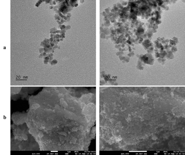 Gold-coated magnetic nanoparticles were synthesised by chemical coprecipitation followed by gold coating. TEM and SEM characterizations were conducted to evaluate the size, shape, composition, and surface morphologies of the prepared nanoparticles. Fig. 1 shows SEM and TEM images. The results show that Au-SPIONs have a regular shape and an average size of less than 10 nm. These unique properties hold great promise for drug delivery applications [25, 26].