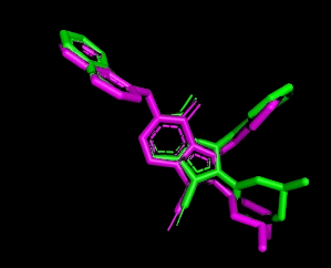 Fig. 2: Validation of native ligand (green) and redocking ligand (purple)