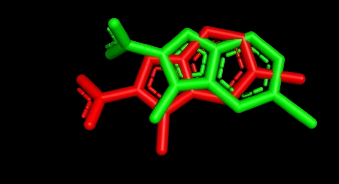 Fig. 3: Validation of native ligand (green) and redocking ligand (red)