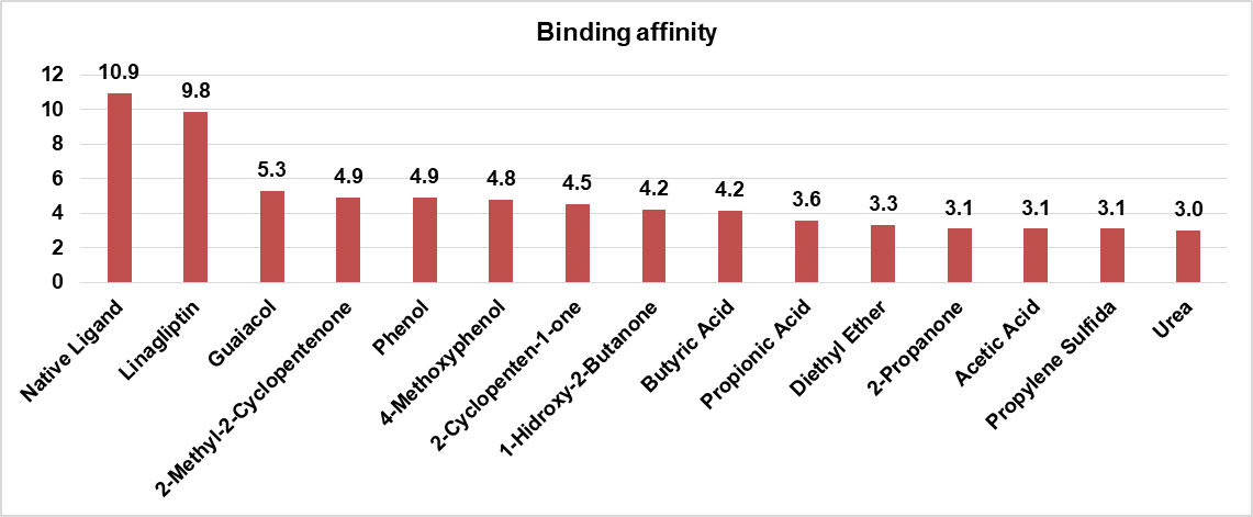Fig. 4: Binding affinity of liquid smoke compounds and DPP4 inhibitor
