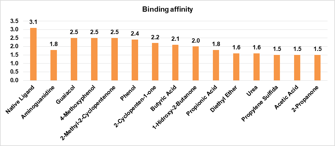 Fig. 5: Binding affinity of liquid smoke compounds and AGE-RAGE