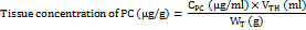 Where, CPC = concentration of PC per ml of tissue sample (µg/ml), VTH = volume of homogenized tissue (ml), WT = weight of tissue sample (g)