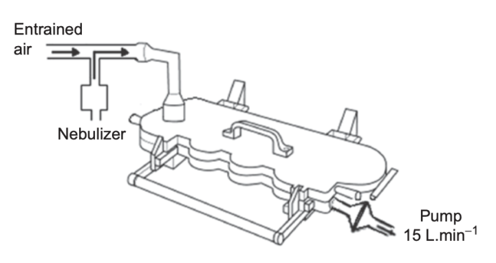 Two different types of nebulisers were investigated. The first type was the Omron Compressor Nebuliser NE-C28. The second type involves the use of compressed oxygen, with flow rates set at either 3L per minute or 6L per minute.