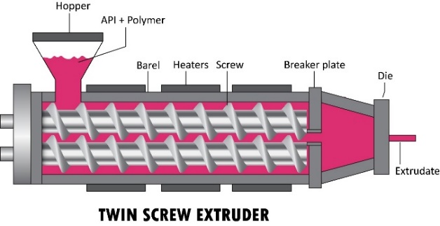 Repka MA, Shah S, Lu J, Maddineni S, Morott J, Patwardhan K. Melt extrusion process to product. Expert Opin Drug Deliv. 2012;9(1):105-25. doi: 10.1517/17425247.2012.642365, PMID 22145932.
