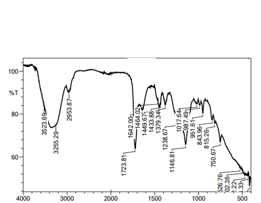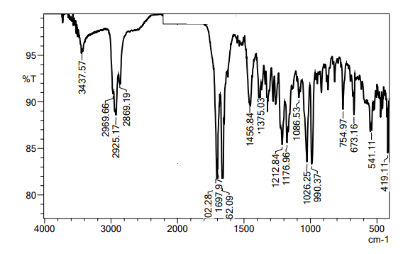 FTIR was conducted to evaluate the medication's interaction and compatibility with other ingredients. A spectrometer was used to observe FTIR spectra of licorice oil and excipients mixed with potassium bromide. The analysis used transmission mode scanning with wavenumbers ranging from 4000 to 400 cm-1 [44].