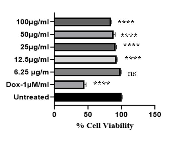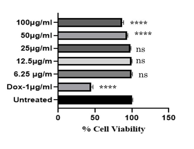 The MTT cytotoxicity study indicated non-toxic potential properties of licorice oil and its emulgel at lower level and caused moderate toxicity at higher level against HaCaT cell lines [69]. Fig. 6 (A and B) showed significant decrease in the cell viability in the group treated with licorice oil and emulgel at100 µg/ml compared to the untreated group. Licorice oil and its emulgel showed the anti-psoriatic activity [70].