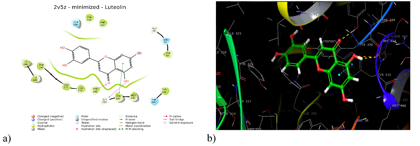 | Luteolin | 286.24 | 3.00 | 4.50 | 0.95 | 121.40 | 0 | 0 |