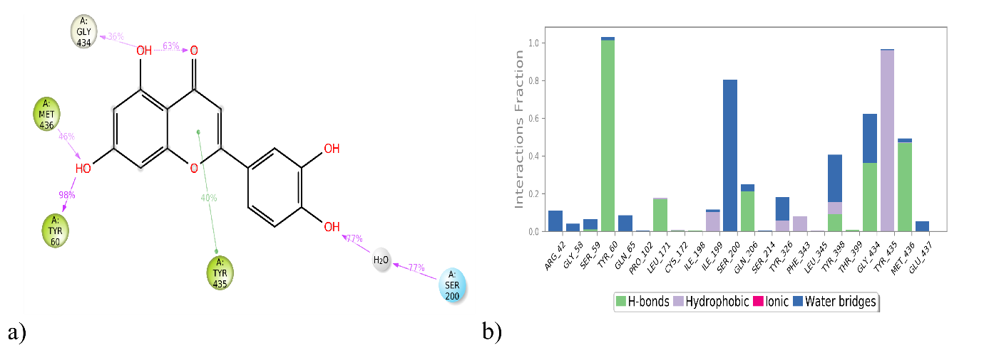 The pharmacokinetic properties and the drug-like characteristics of the phytoconstituents are illustrated in table 2.