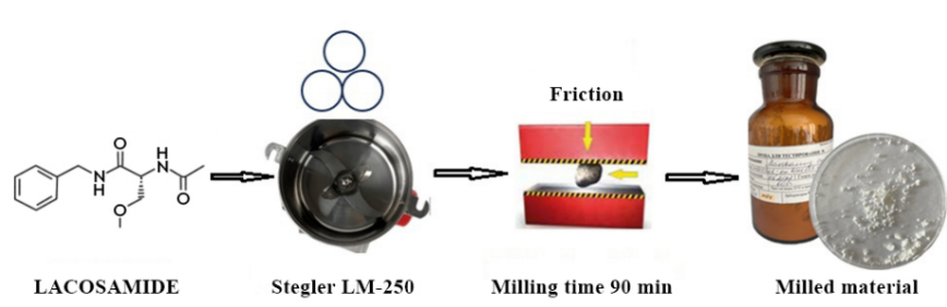 Fig. 3: Lacosamide powder mechanical activation research design scheme