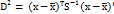 Where D2– is the Mahalanobis distance; x– vector of data;
