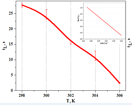 In order to demonstrate the biological effect of the mechanical activation of the lacosamide powder, a test was conducted for the cultivation of Spirostomum ambigua in 1% aqueous solutions. The graphical dependence in coordinates «lifetime tL, s-T, K» is presented in the fig. 12.