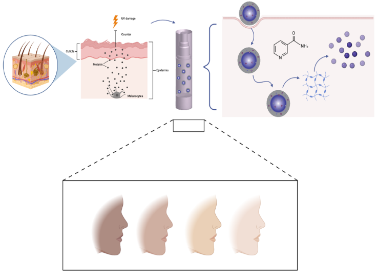 Fig. 2: Illustration of mechanism for N-loaded nanoparticle gel as a skin whitening agent