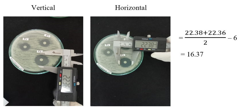 The petri dishes are then incubated at 37 °C for 48 h (2 d). After the incubation period, the diameter of the inhibition zones around the discs is measured using a vernier caliper. This measurement allows for the assessment of the antifungal activity of the shampoo formulation against the Candida albicans fungus [37, 42].