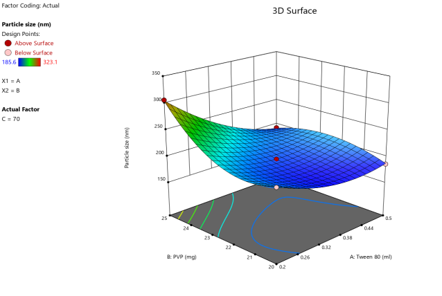 Fig. 3: Anova 3-dimensional graph for particle size