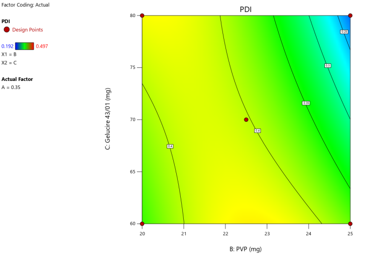 Fig. 7: Response of particle size and polydispersity Index (PDI) for ideal formulation