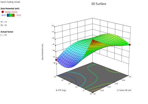 Fig. 5: Anova 3-dimensional graph for zeta potential