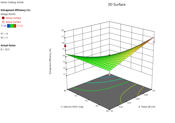 Fig. 6: ANOVA 3-Dimensional graph for entrapment efficiency