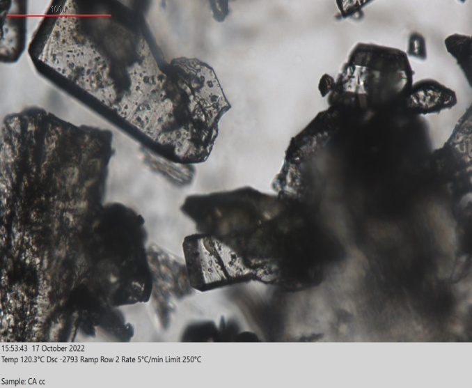 Fig. 7(b): Melting of cocrystals at 120 C (1OOM)
