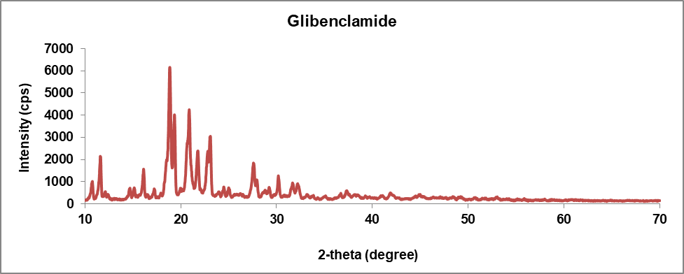A complimentary sample of glibenclamide (50 gm) was obtained from Sun Pharma Industry Pvt. Ltd., Gurugram, and Haryana. Various coformers and additional chemicals were sourced from CDH Pvt. Ltd., while solvents used in co-crystal preparation and sodium carbonate for the desiccator were purchased from Research Lab Pvt. Ltd.