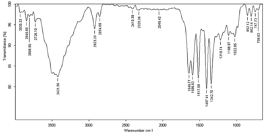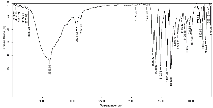 The characteristic peaks and stretches observed in the FTIR of the NSD remained undisturbed even when combined with the excipients used. This observation indicates that the chemical bonds and functional groups of the NSD were retained without alteration or significant interaction with the excipients. Such stability in the FTIR spectrum suggests that the NSD and excipients are compatible, supporting their potential application together in formulations without compromising the integrity of the NSD's chemical structure (fig. 2 and 3).