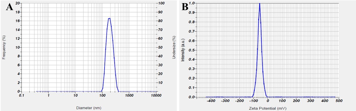 To characterize the transferosomal suspension, a series of analyses were conducted to determine key parameters influencing its stability and behavior. To assess the VS and surface charge (ZP), a sample of the transferosomal suspension was first diluted with double-distilled water to ensure optimal measurement conditions. Subsequently, the VS and ZP were measured using a laser scattering particle size analyzer [18, 19].
