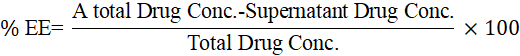 Ethosomes were centrifuged at 12000 rpm for 30 min (Remi, Cε, NT 2178GK). The absorbance of supernatant liquid was taken spectrophotometrically after separation from total mixture at 281 nm by using a UV spectrophotometer (UV-2450, Shimadzu, Japan) [27, 28]. The following formulas were used to calculate % EE and % DL.