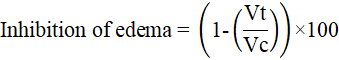 Where, Vt: the paw edema volume of the groups treated with the formulations in rats,