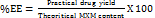 In a solution of 0.1 M HCl, 100 mg of microspheres were dispersed overnight with periodic agitation. Following this, the mixture was clarified, and the filtrate was subjected to spectrophotometric analysis at 360 nm. The EE was calculated by determining the ratio of the actual amount of MXM in the formulation to the initially added quantity [19]. This assessment provided a measure of how effectively the microspheres encapsulated the intended drug, crucial for evaluating their performance as drug delivery systems (e. q.2).