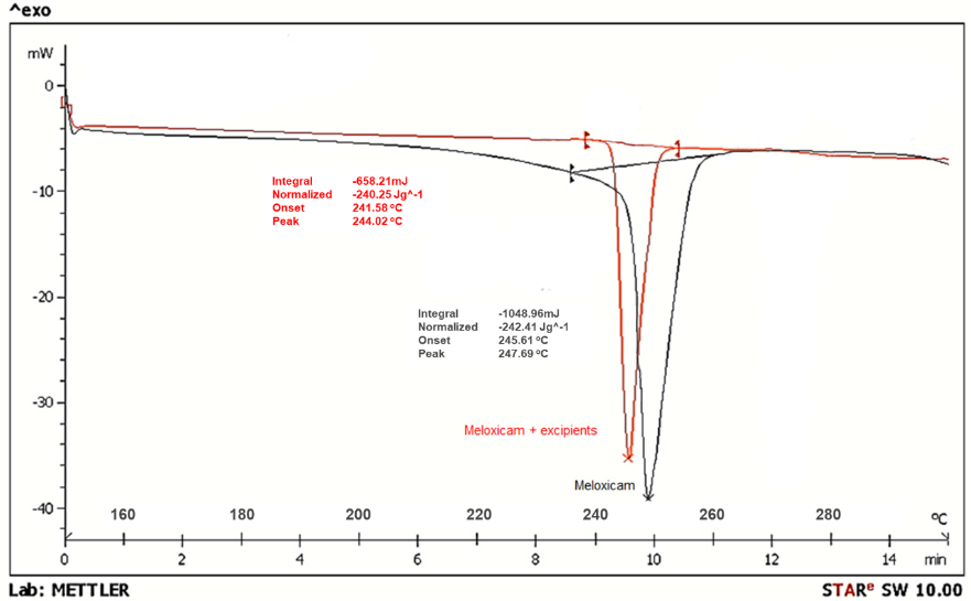 In DSC studies, initial baseline analyses are conducted individually on MXM and each excipient to establish their respective thermal profiles. Subsequently, physical mixtures containing MXM and all excipients are prepared and analyzed to detect any changes in thermal behavior, such as shifts in peak temperatures, emergence of new peaks, or alterations in enthalpies. These observations help identify potential interactions or incompatibilities between MXM and the excipients. Solid-state compatibility is further assessed to ascertain crystallinity, amorphousness, or any polymorphic transformations that may occur.