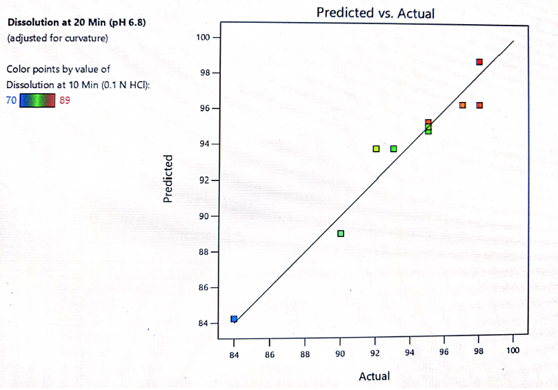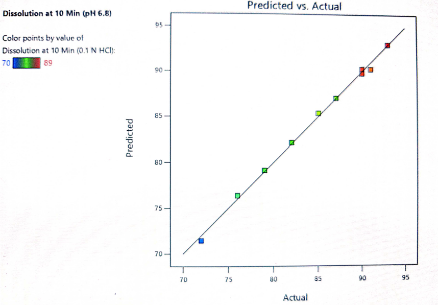 Fig. 15: Predicted vs. actual response for dissolution at 10 min