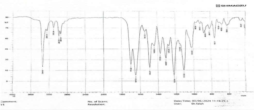 Fig. 4: FTIR spectrum of selected formula (run 14)