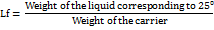 To determine the maximum liquid load capacity, three different porous carriers, namely neusillin US2, sylysia 730, fujicalin were selected and mixed with one common coating material i. e., aerosil at an R-value of 20. Admixtures of liquid powder were made at R = 20. To these admixtures of porous carrier and coating material (10 g), increasing amounts of non-volatile liquid (Tween 80 and labrasol) were added. After mixing for three minutes, the mixture was kept overnight and the angle of repose was determined. The admixture showing the angle of repose 25 was selected [17].