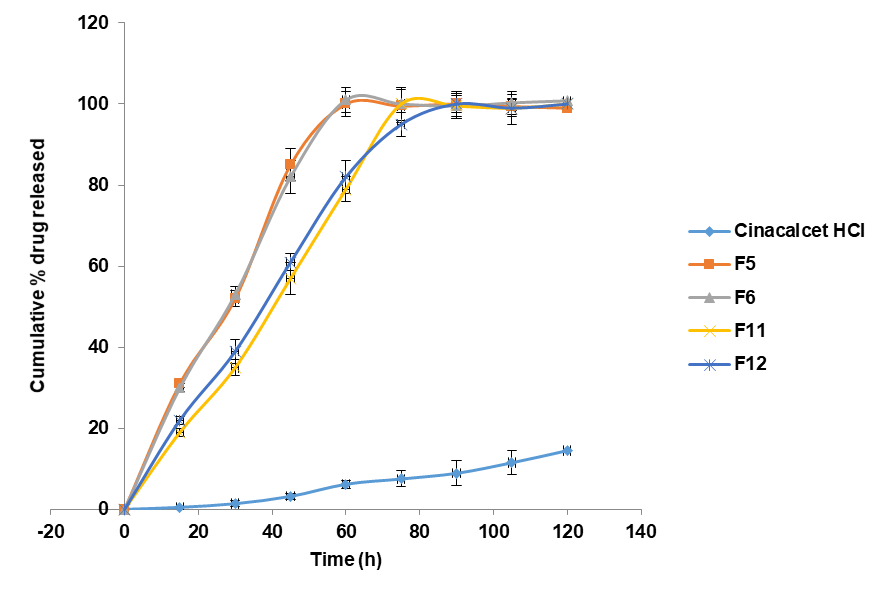 | Cinacalcet HCl | 41.3±3.1 | 29.6±2.43 | 1.9±0.06 |