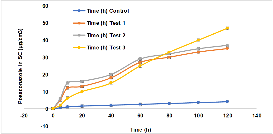 | PO: Posaconazole; NS: Nanosponges. Results are represented by mean±SD (n = 3). |