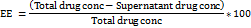 All of the software-generated formulas that made up the dispersion were placed in a centrifuge tube and spun for 90 min at 15000 RPM. After removing the supernatant liquid, the amount of free drug was calculated. For every formulation, this was done [37]. Table 2 summarizes the data obtained.