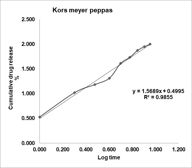 Fig. 4: Kinetic model graph of the optimized formulation; the optimized formulation was used for determining the kinetic model, the dissolution was performed in triplicate. The R2 value for all the formulations was calculated. The R2 value for the Korsmeyer Peppas model was found to be highest is 0.9855