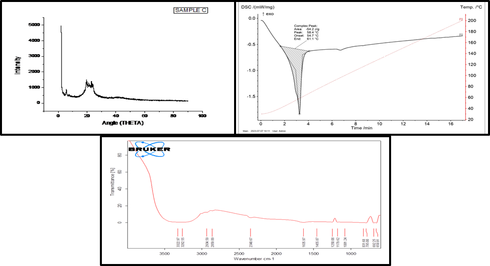 Fig. 6: XRD, DSC, FTIR plot of optimized formulation lyophilized