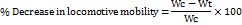 The average percentage decrease in locomotive mobility (i. e., locomotive activity values) after 30 min and 45 min of drug treatment was calculated using the preceding formula.