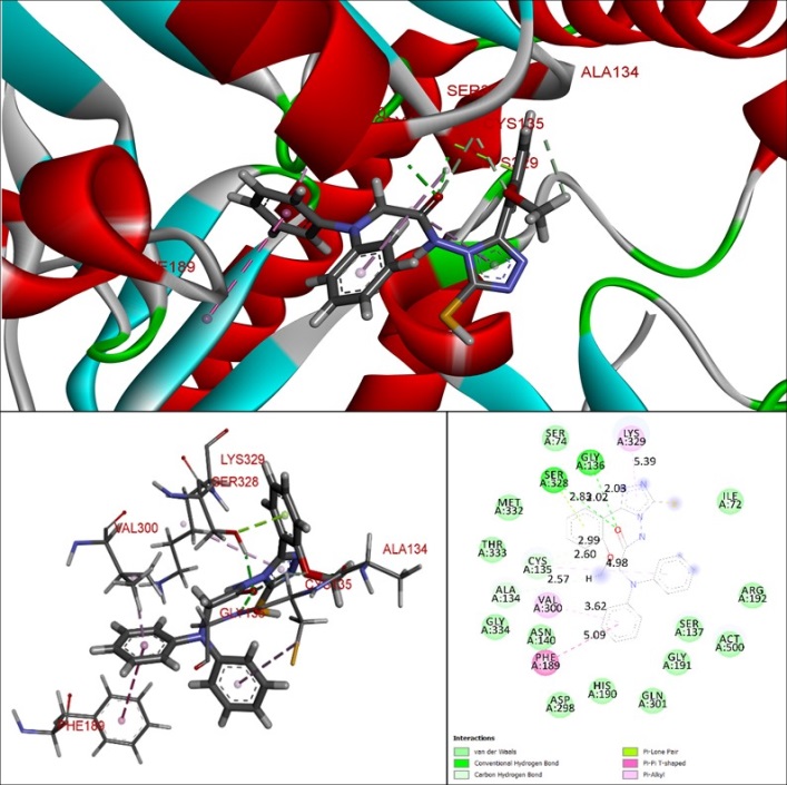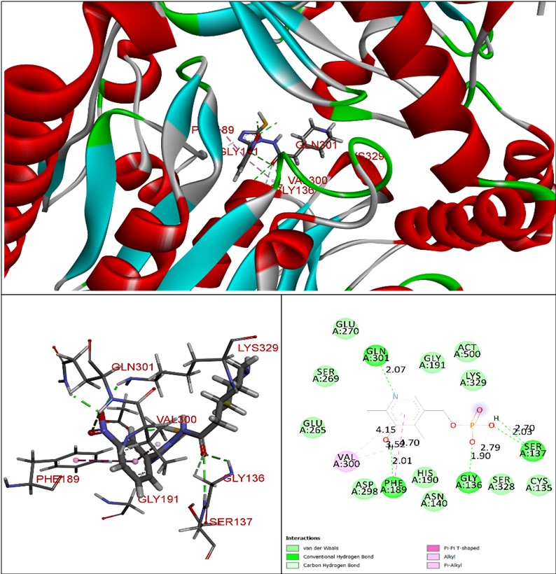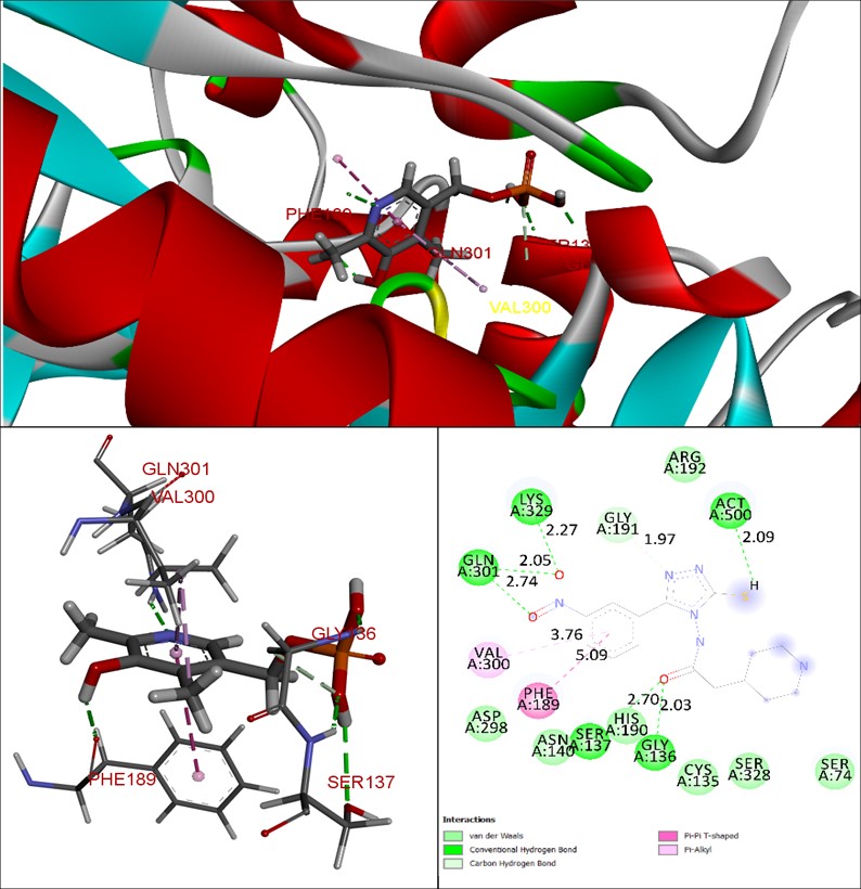 Important interacting polar amino acids that participated in hydrogen bond interactions at the protein's binding sites included Gln301, Lys329, Ser137, Ser328, and Gly136. The results are summarized in table 1.